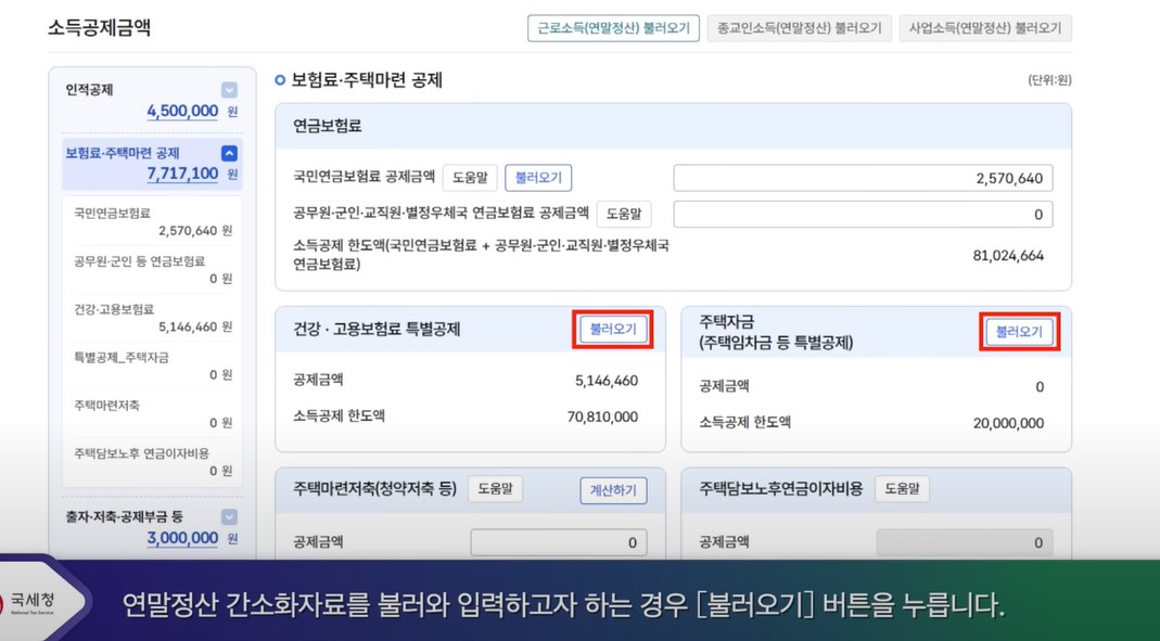 국세청 자료 불러오기 버튼으로 자동 입력 가능